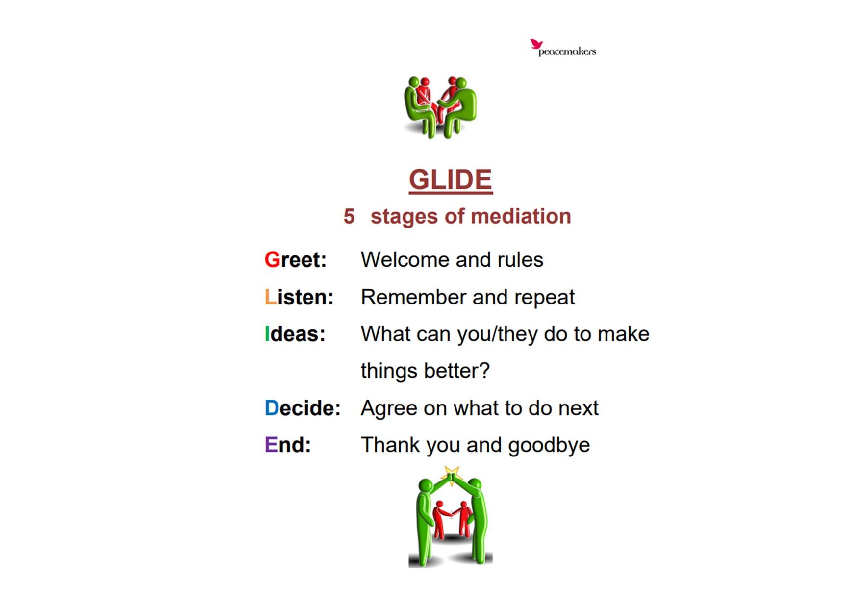 The Peer Mediators have a set script to support the mediation process. However, there are times when off script questions may be needed. Examples of these are below: