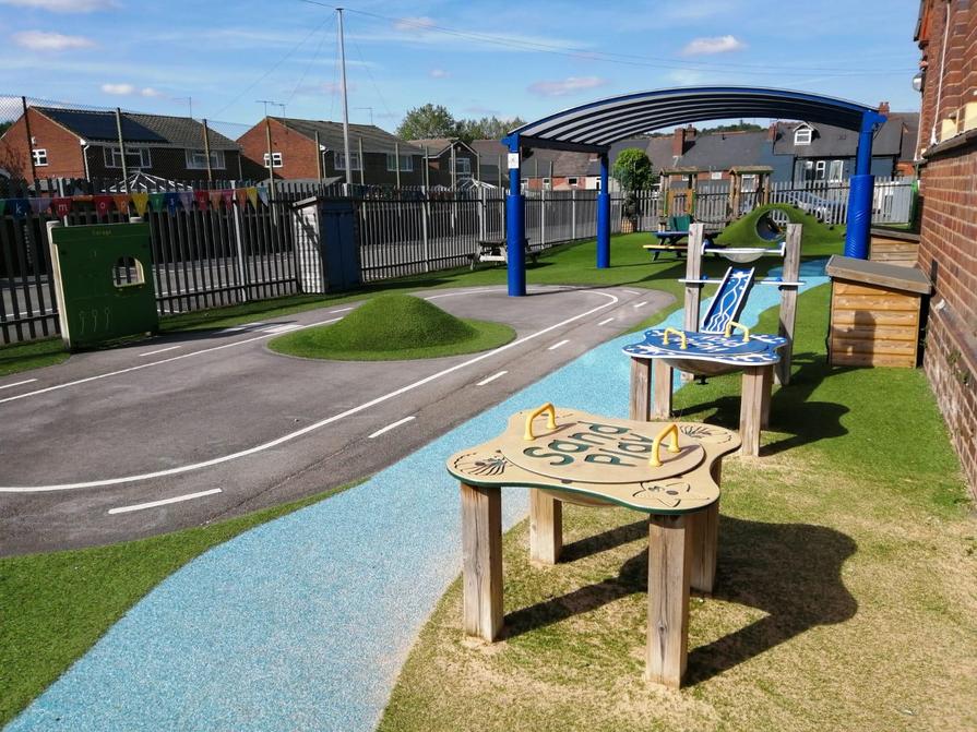 During our continuous provision time, children have continuous access to our outdoor area.  We have lots of fun outside.  The children can play in the sandpit, water tray, mud kitchen, on bikes or climbing equipment.  We also have opportunities for outdoor maths, phonics and writing activities.