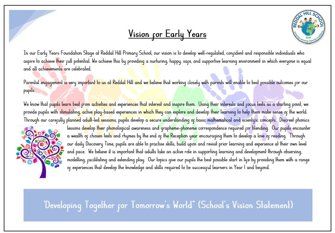 Thank you all for choosing Reddal Hill as the school for your child. We are really looking forward to meeting each and every one of you and your child/ children and working in partnership with yourselves, to ensure that your child/ children have a happy, successful and enjoyable education throughout their time here at Reddal Hill.