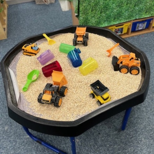 During our continuous provision time, children have continuous access to our outdoor area. We have lots of fun outside. The children can play in the sandpit, water tray, mud kitchen, on bikes or climbing equipment. We also have opportunities for outdoor maths, phonics and writing activities.
