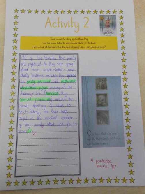 Throughout the week, we produced a new front cover for the story, a new blurb for the back cover of the book, a character description based on one of the main characters, a picture representation from an audio paragraph from the book and a storyboard template of the whole story.