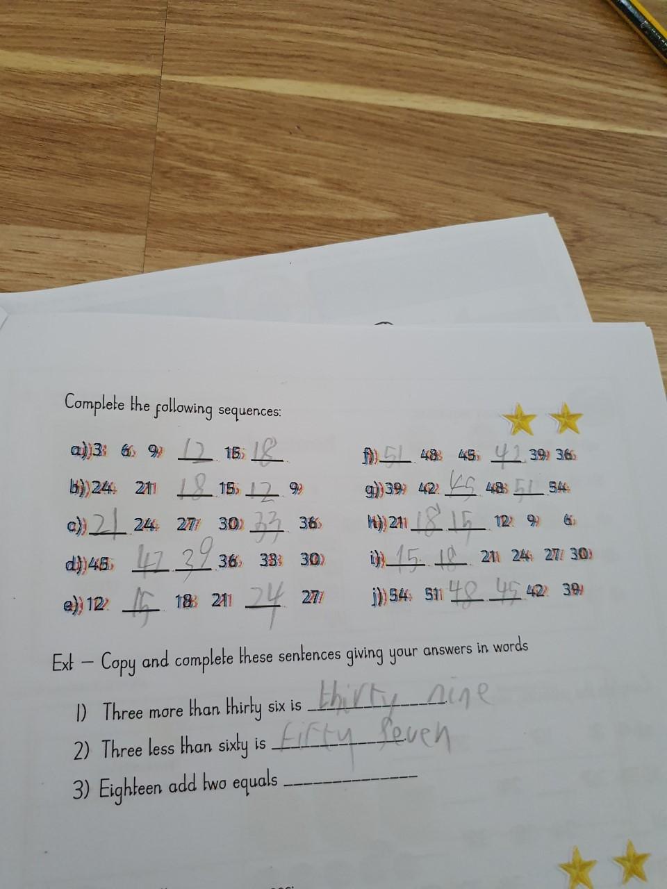 Well done to Chase, who has been working super hard with spellings, writing and maths. Here is an example of some the amazing number sequences he has been doing.