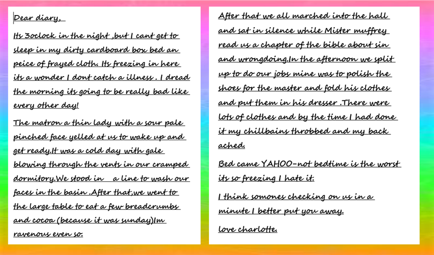 Hajrah has written a historical recount based on a day in the workhouse. She has also published her work by typing it up on a word document. Well done Hajrah!
