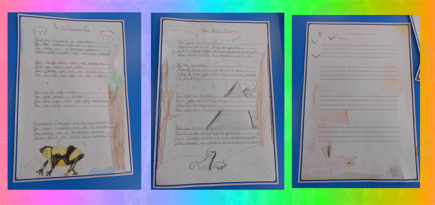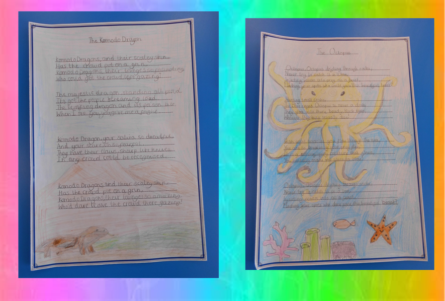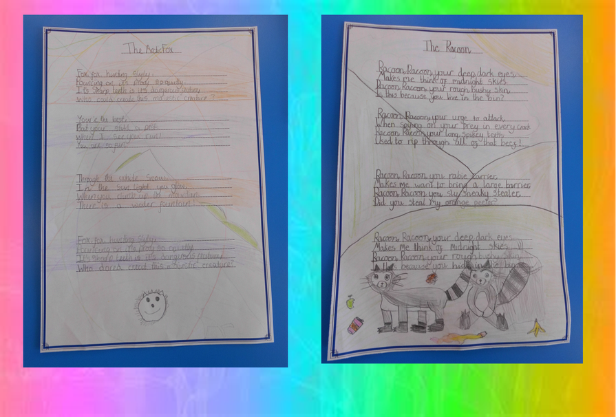 The children in school this week created amazing poems about their chosen animal. Have a look at the beautiful presentation of their published poems! Well done Year 5!