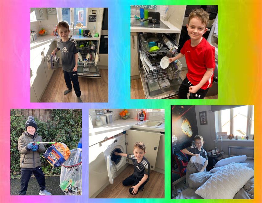 Kobi has been helping out at home recently while completing his life skill challenges! He has cleaned his bedroom, helped to load and unload the dishwasher and learnt how to use a washing machine. I'm sure Kobi's adults are very pleased!