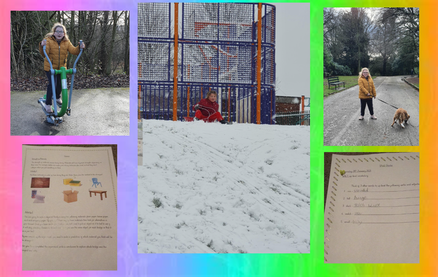 A huge shout-out to Mollie who has been working hard again this week on her home learning! She has also been enjoying some fresh air walking her dog, Toffee, and making the most of the snow!