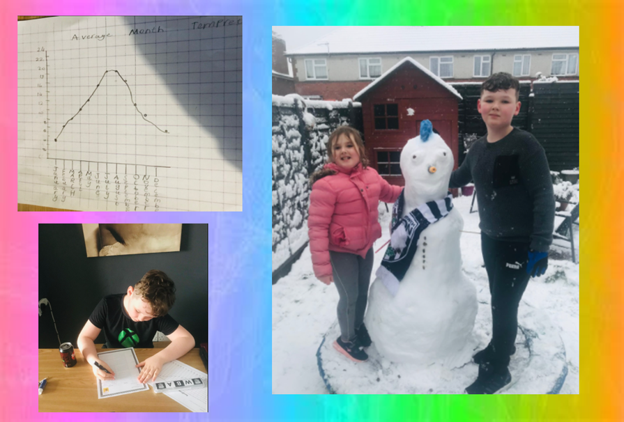 Bailey has not only been continuing to work hard this week on his home learning, he has also made this fantastic snowman with his sister!