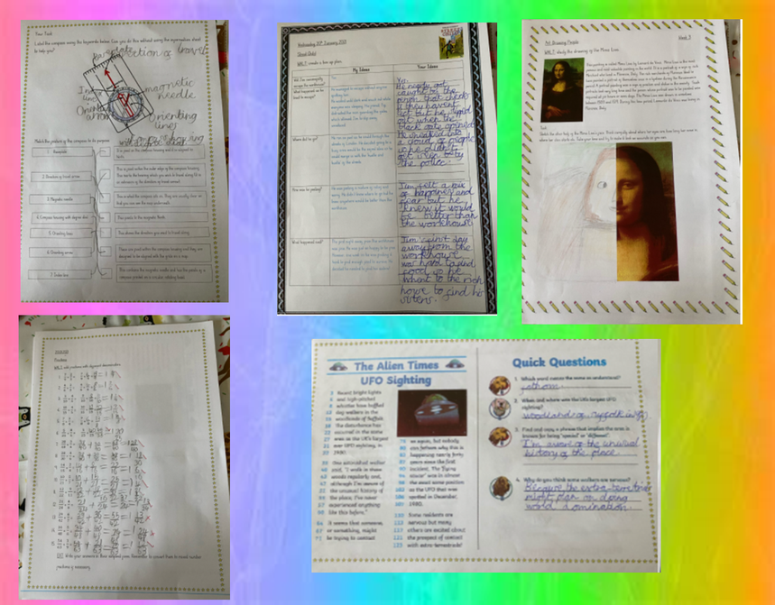 A huge shout-out to Ethan who has been working really hard at home! He has completed some brilliant work. I love his Mona Lisa drawing! Well done Ethan.